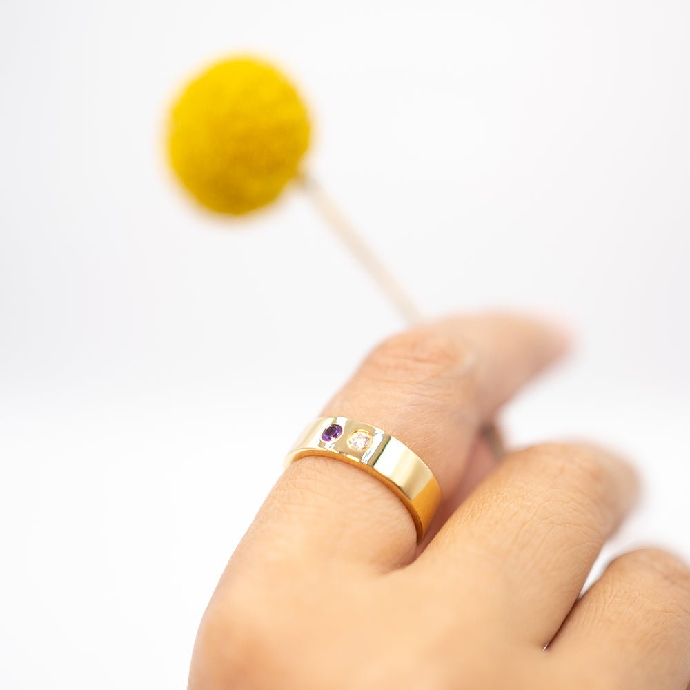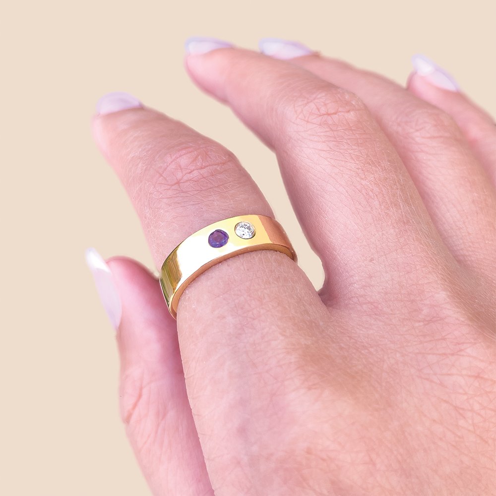 A minimalist band that captures your bond with the most special people in your life. Create your unique piece by personalising with your and your loved one's birthstones.